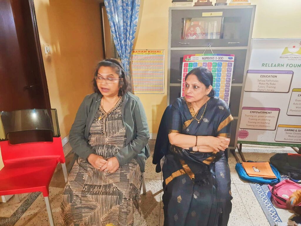 Recently, two esteemed teachers visited the Relearn Foundation and conducted an interactive session with the children. Their names are Ms. Sukla Mistri, retired Director of IOCL, and Prof. Karabi Das, Professor at IIT Kharagpur. The visit proved to be highly beneficial for the children, as they had the opportunity to connect with the teachers and engage in meaningful conversations. During the visit, the teachers took the time to ask the children about their aspirations and dreams for the future. The children were eager to share their thoughts. Many of the girls expressed their desire to become nurses or teachers, while most of the boys aspired to become police officers. This provided valuable insight into the children’s goals and ambitions. After the interactive session, the teachers delivered an inspiring motivational speech, encouraging the children to pursue their dreams and work hard to achieve their goals. They emphasized the importance of education and determination in shaping the children’s futures and overcoming challenges. At the end of the program, the teachers took a group selfie with the children, creating a memorable moment for all. They also extended their best wishes to the children for their future endeavors. This visit was a wonderful experience for our children, as they gained knowledge, inspiration, and a sense of confidence and encouragement to follow their dreams. The children truly enjoyed the session and learned valuable lessons, which will undoubtedly guide them on their journey. In conclusion, this event was an excellent initiative to foster a positive learning environment and inspire the children to aim high and achieve great things in life.