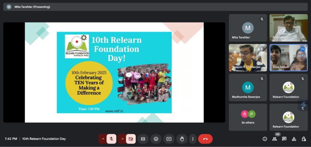 The 10th Foundation Day of Relearn Foundation celebrated a decade of empowering underprivileged students through its Sahaaj Pathshala initiative. Launched in 2015, the foundation provides free education, mentorship, and holistic support, particularly focusing on rural villages and urban slums. The event was held online, with key figures like Professor Prabal Kumar Sen, Mr. Swapan Kumar Chatterjee, Dr. Sangita Mridha, and Dr. Aniket Dutta sharing insights. Tutors highlighted success stories of students like Chandni and Shivani, who overcame personal barriers through education. Performances by students, including dancing, poetry, and drama, showcased their talent. The celebration emphasized the importance of innovative teaching methods and mentorship. Dr. Mita Tarafder, the foundation’s Chief, closed the event with a rendition of a Rabindranath Tagore song. The foundation’s goal is to reach 10,000 students, tutors, and facilitators by 2030, with a focus on education, empowerment, and sustainability, aligning with the UN’s SDGs. The event highlighted the transformative power of education in shaping a better future.